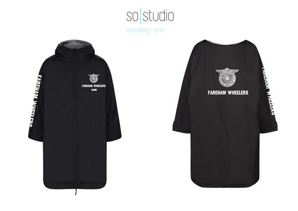 Kids: The ultimate team robe is made in a water resistant fabric with a cosy sherpa fleece lining and three-piece hood. The roomy fit with double-ended full front zip allows wearers to keep warm and get changed underneath the robe. Perfect for wild swimming or wearing on team sidelines. Zipped pockets with fleece lining keep hands warm with multiple inner pockets for keeping belongings safe. Topped off with a large embroidery zip for access to directly decorate.