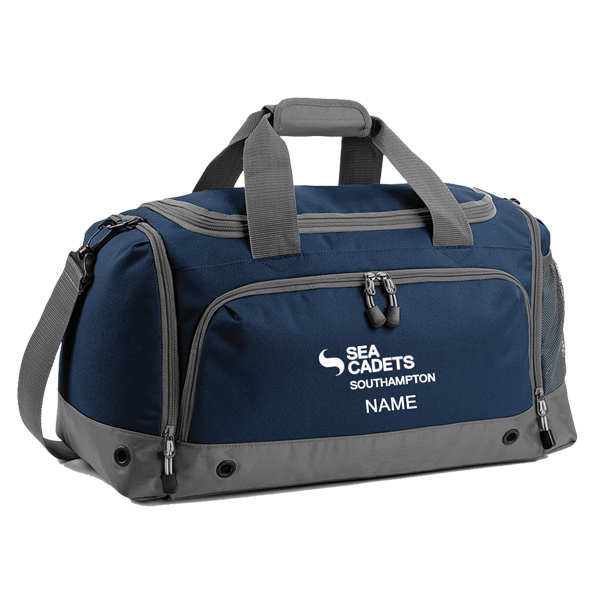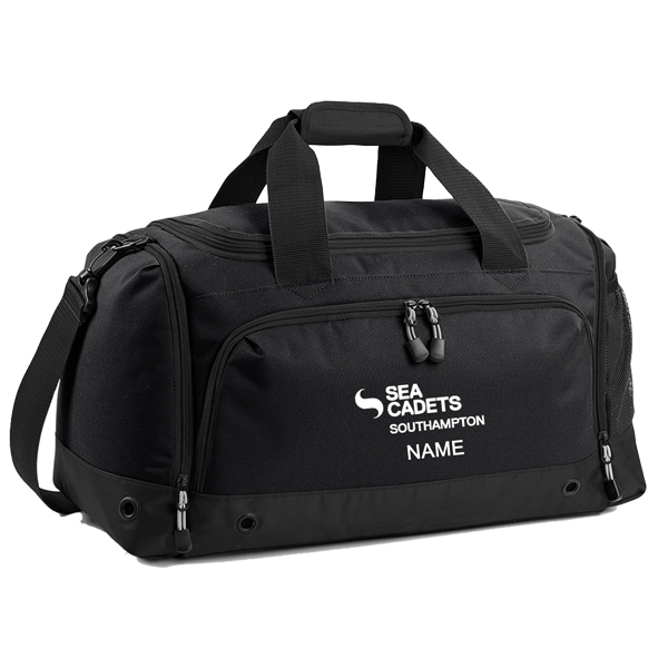 Water-resistant fabric. Detachable adjustable shoulder strap with pad. Shoe tunnel. Wet pocket. Internal valuables pocket. External mesh pocket. Zippered end pockets. Protective base feet. Metal ventilation eyelets. Padded hand grip.